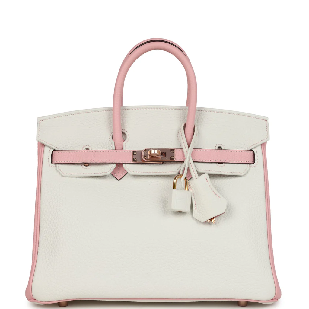 Hermès Special Order (HSS) Birkin 25 White and Rose Sakura Clemence Rose Gold Hardware